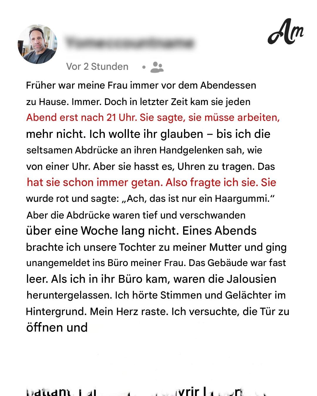 Ich wollte ihr glauben. Meine Frau hat mir nie einen Grund gegeben, ihr nicht zu glauben. Allerdings konnte ich das Unbehagen, das mich umgab, nicht loswerden. Und der schwierigste Teil?