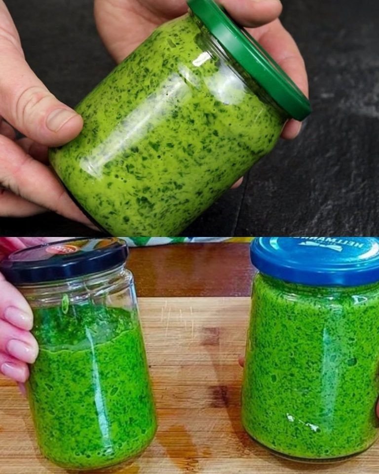 Diese gesunde Paste aus frischen Kräutern, Zitrone und Knoblauch eignet sich perfekt zur längeren Aufbewahrung im Kühlschrank. Sie verleiht jedem Gericht, von Suppen bis hin zu Toast, Frische und Geschmack. Die Sauce ist einfach zuzubereiten und ihre natürlichen Zutaten behalten ihre wertvollen Inhaltsstoffe und ihren vollen Geschmack.