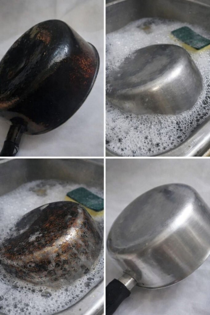 Wie reinigt man die Böden von Töpfen und Pfannen, damit sie wieder wie neu aussehen?