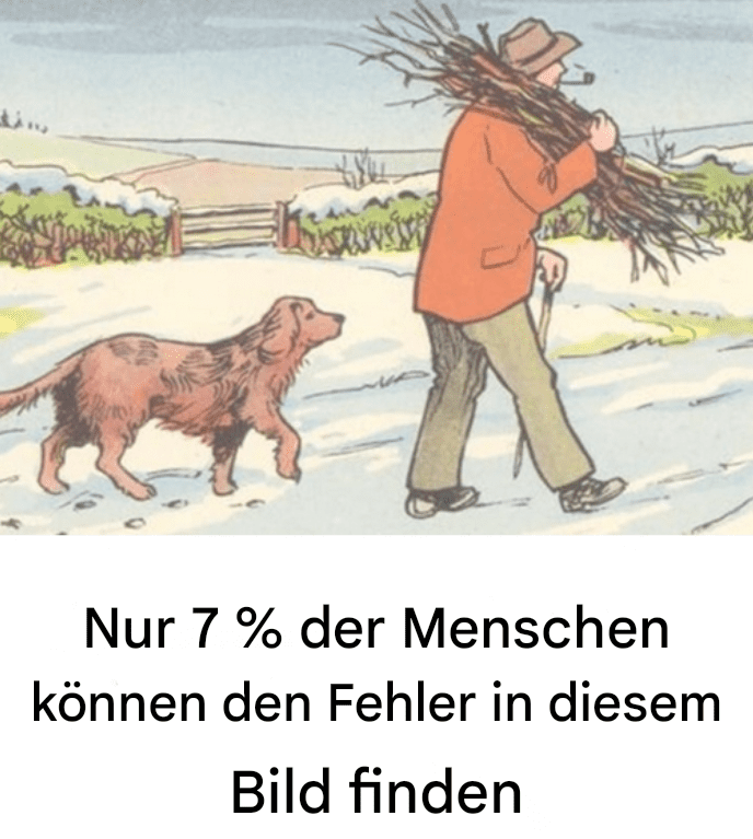 Auf dem fraglichen Bild ist ein Mann zu sehen, der mit seinem Hund im Schnee spazieren geht. Eine banale Zeichnung, aber ein Irrtum hat sich eingeschlichen.